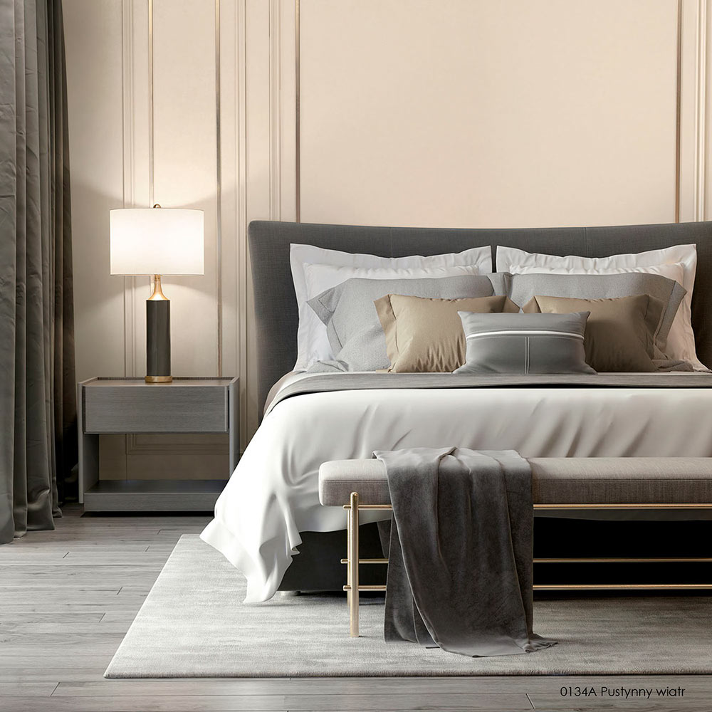 Jeśli obawiasz się, że ściany przy łóżku szybko się zabrudzą, albo planujesz malowanie sypialni dziecięcej, wybierz farby lateksowe. Ich główną zaletą jest zmywalność – zabrudzenia można delikatnie przetrzeć wilgotną ściereczką bez ryzyka starcia koloru. W ofercie Stylne znajdziesz kilka sprawdzonych propozycji: